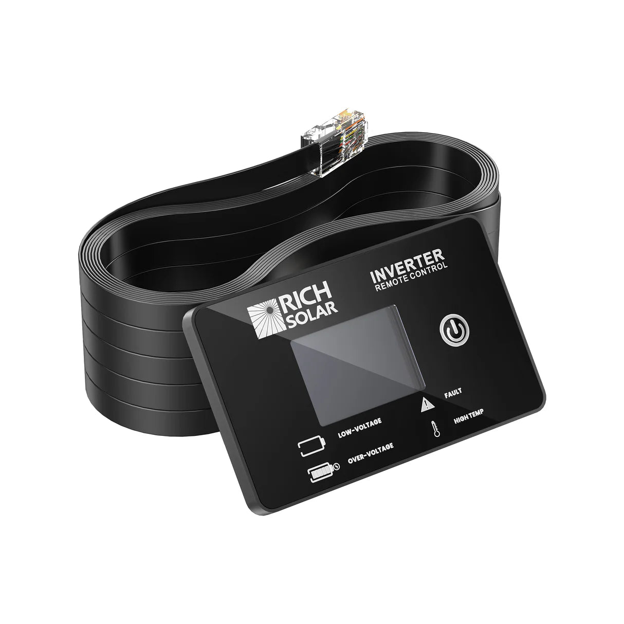 Rich Solar’s Inverter Remote Control features a smart LCD display for real-time monitoring and control of Nova Pure Series inverters. Designed for wall-mount or dashboard integration, it displays voltage, wattage, battery status, and fault codes. Plug-and-play via RJ45 cable, this remote is ideal for RVs, trailers, boats, and mobile setups where inverter access is limited. Compatible only with Nova Pure 1K, 1.5K, 2K, and 3K models.