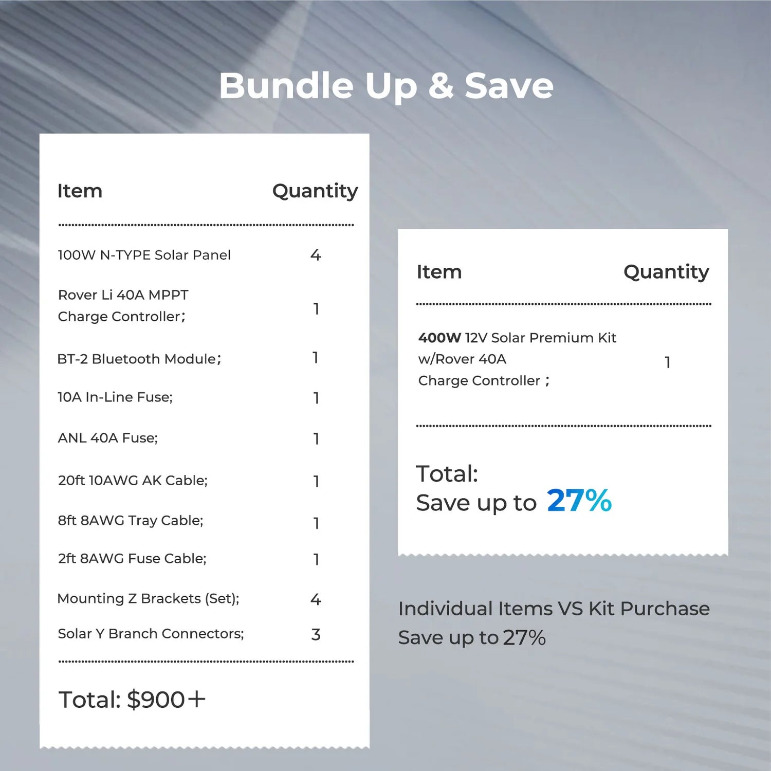 Renogy 400W 12V Solar Premium Kit – MPPT or REGO Controller