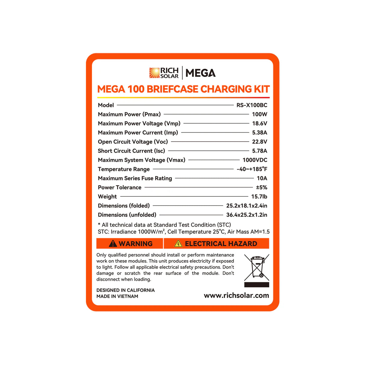 Rich Solar MEGA 100W Portable Briefcase Solar Panel Kit – 12V Charging for Generators & Power Stations