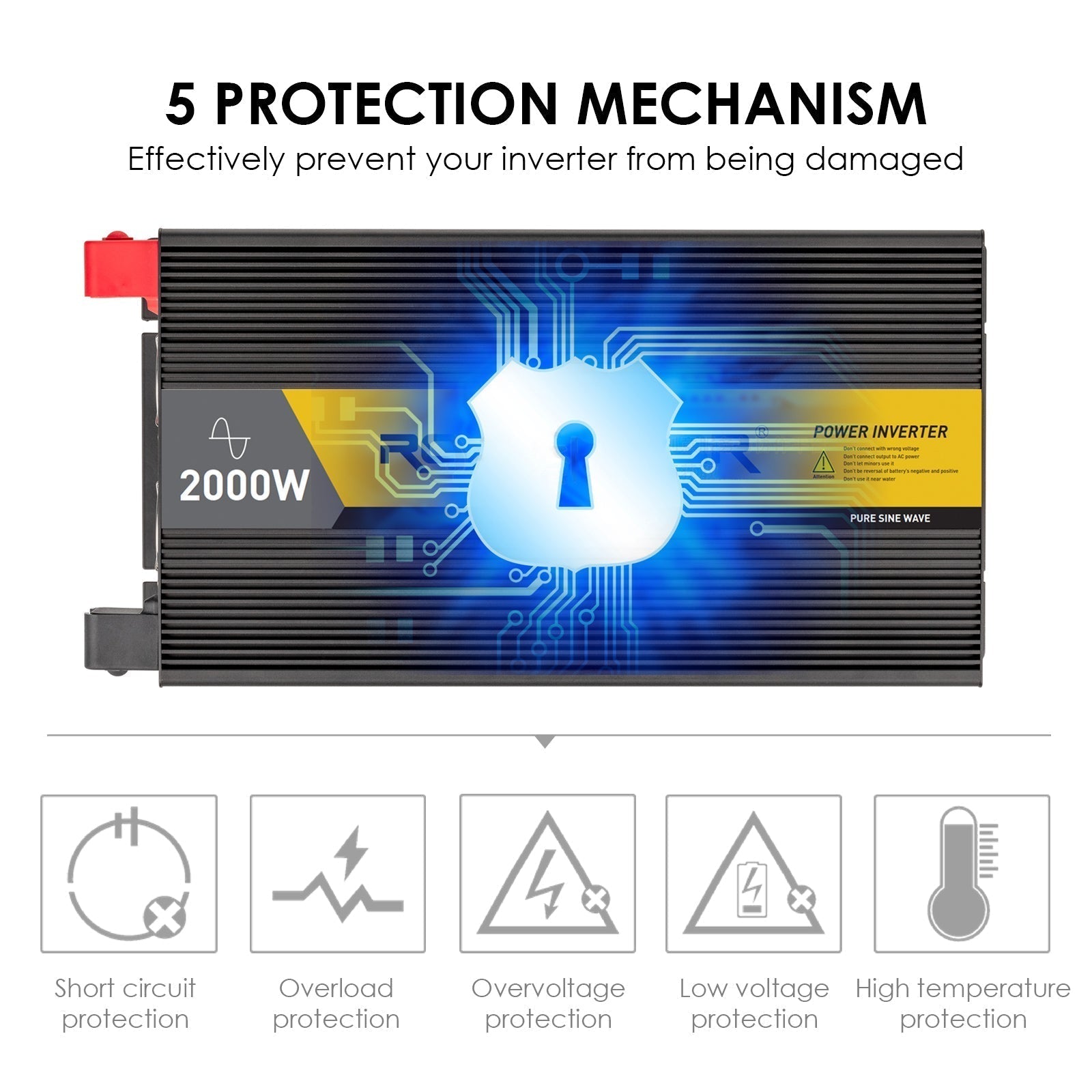 ROCKSOLAR 2000W 12V Pure Sine Wave Power Inverter – Off-Grid AC Converter for RV & Backup